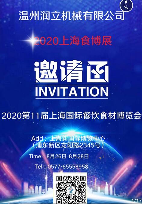 敬請關(guān)注2020第11屆上海國際餐飲食材博覽會--潤立機(jī)械